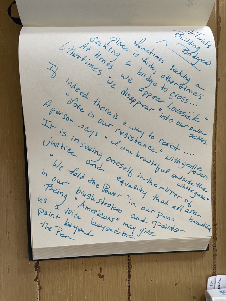 NEW Poem by Bahareh Amidi Posted byMaribel Rodriguez24 May, 202424 May, 2024Posted inactivism, advocacy, art, poetry, Sin categoría, storiesTags:art, Brookland, DC, event, exhibit, immigrant, immigrant art, immigrant stories, poetry Inspired by the artists showcased in ARTivists: Building Bridges exhibit. “We Hold the Power” in our pens, brushstrokes and paints.”poet – Bahareh Amidi Compártelo: Click to share on X (Opens in new window) X Click to share on Facebook (Opens in new window) Facebook Like Loading... Related