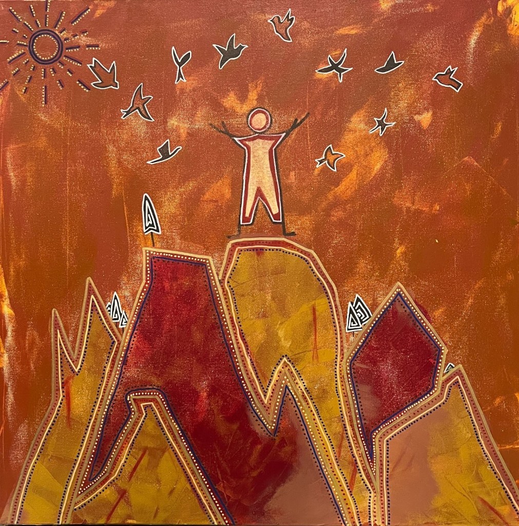 outstretched embodies the call to live in balance with nature, as the sun shines and birds soar